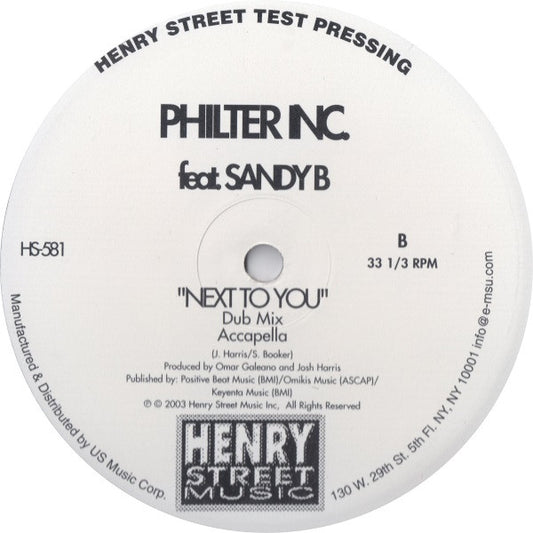 Philter Inc. Feat. Sandy B - Next To You (12", TP) (Mint (M))