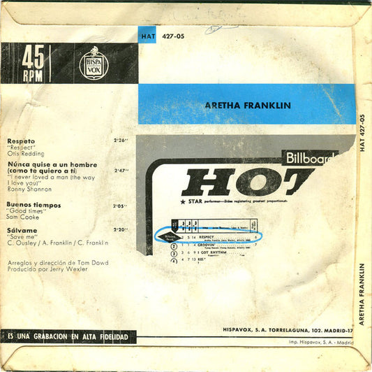 Aretha Franklin - Respeto / Nunca Quise A Un Hombre Como Te Quiero A Ti / Buenos Tiempos / Salvame (7", EP) (Near Mint (NM or M-))