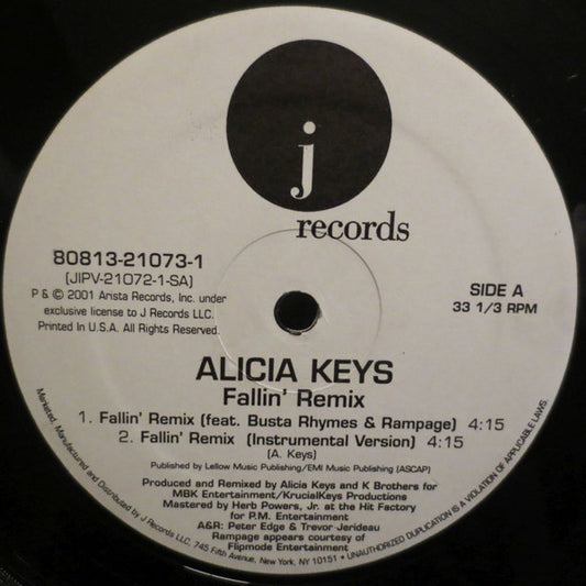 Alicia Keys - Fallin' (Remix) (12") (Good Plus (G+))