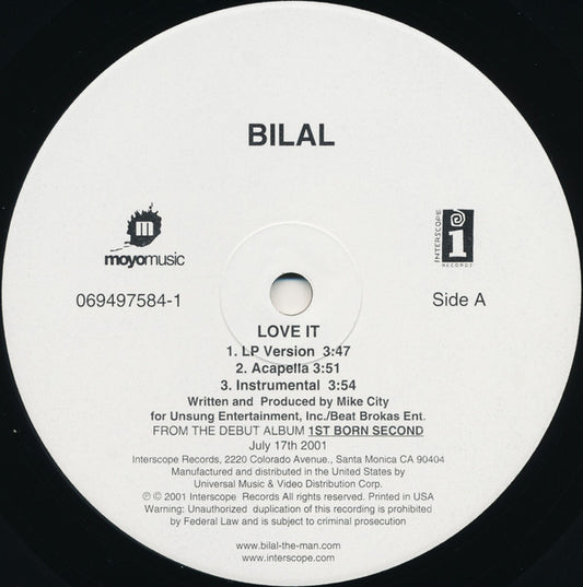 Bilal - Love It (12", Single, Promo) (Very Good Plus (VG+))