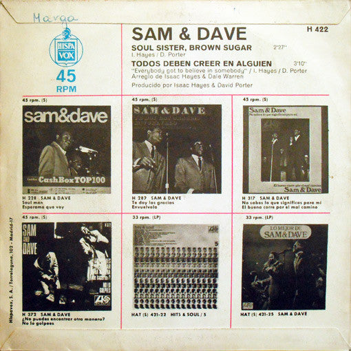 Sam & Dave - Soul Sister, Brown Sugar / Todos Deben Creer En Alguien (7", Single) (Very Good Plus (VG+))