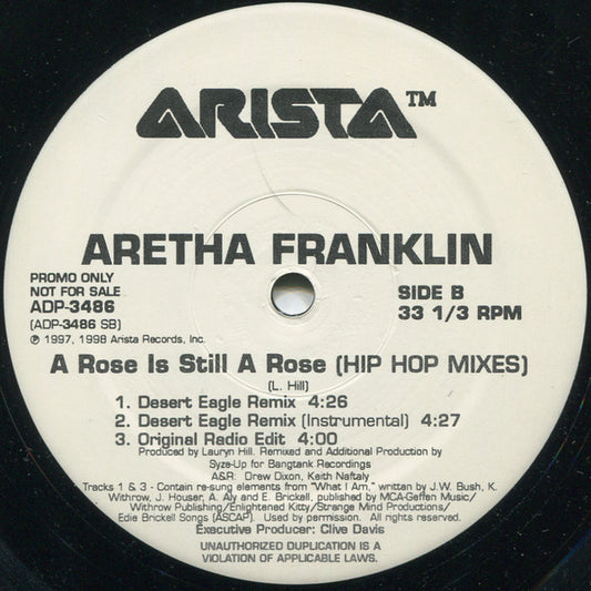 Aretha Franklin - A Rose Is Still A Rose (Hip Hop Mixes) (12", Promo) (Very Good Plus (VG+))