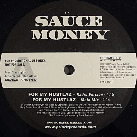 Sauce Money - For My Hustlaz (12", Single, Promo) (Very Good Plus (VG+))