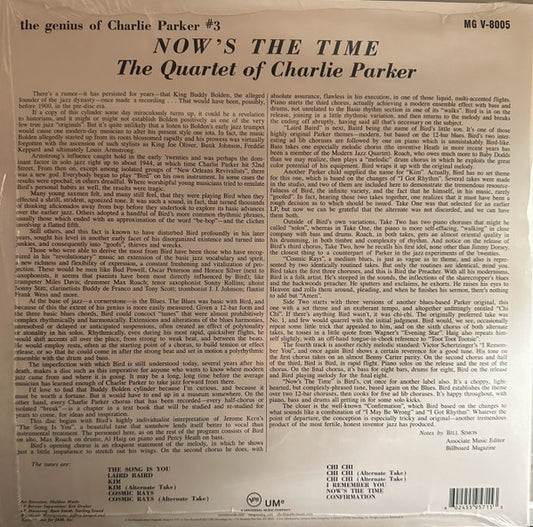 The Charlie Parker Quartet - Now's The Time (LP, Album, RE, 180) (Mint (M))