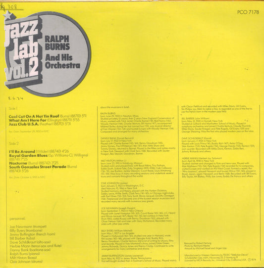 Ralph Burns And His Orchestra - Jazz Lab Vol.2 (LP, Album, Mono, RE) (Very Good Plus (VG+))