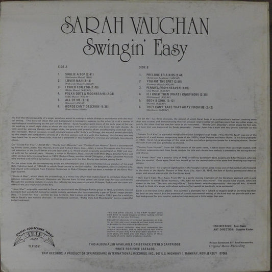 Sarah Vaughan - Swingin' Easy (LP, Album, RE) (Very Good Plus (VG+))