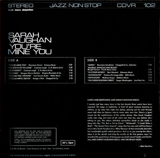 Sarah Vaughan - You're Mine You (LP, Album, RE) (Very Good Plus (VG+))