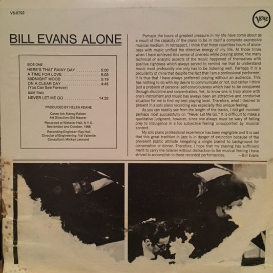 Bill Evans - Alone (LP, Album, RE) (Very Good (VG))
