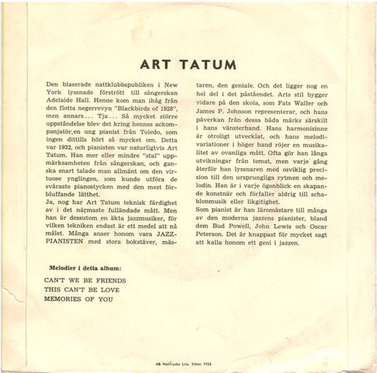 Art Tatum - The Genius Of Art Tatum (7", EP) (Very Good Plus (VG+))
